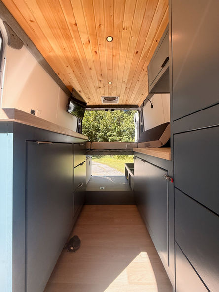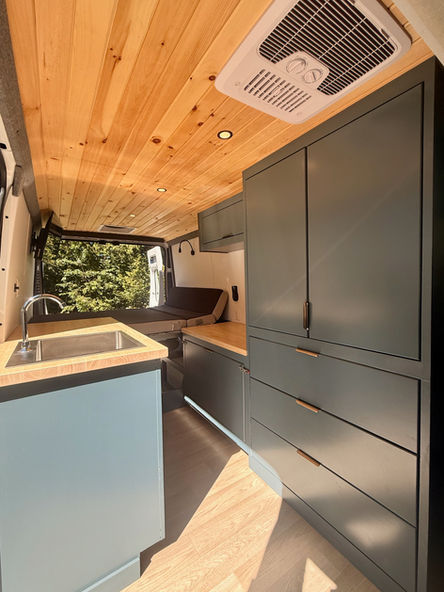 We installed custom cabinetry, lighting, plumbing fixtures, and thoughtful storage solutions, along with the final trim and design accents that tie everything together. With these upgrades, the van is not only functional but polished, comfortable, and fully adventure-ready.